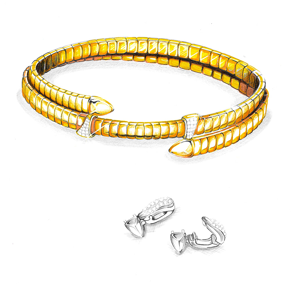 With an unparalleled mechanism that works like magic, THE SHIFT®transitions seamlessly from a necklace to a bracelet. The collection also features gold used in flexible form, that stretches and bends around your wrist or fingers, transforming from a bracelet into a ring in one fluid motion.It’s not just multi-functional, it’s liberating.